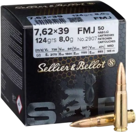 Патрон Sellier & Bellot калибр 7.62x39, 124grs, 8.0g, FJM