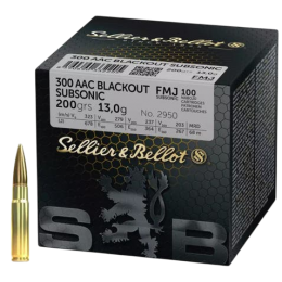 Патрон Sellier & Bellot калибр 300 AAC, BLACKOUT, 200 grs, 13.0g, FJS