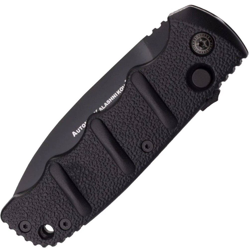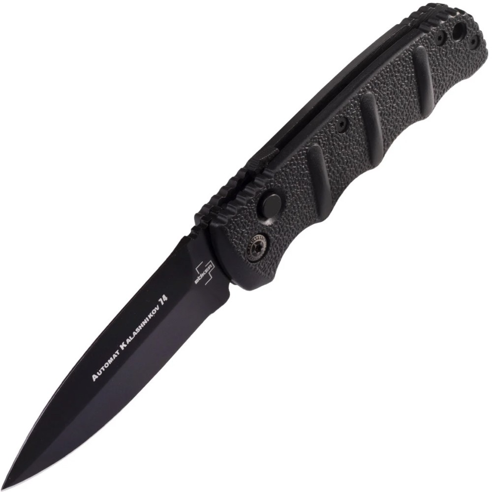 Бокер Плюс АКС-74 из серии Калашникова, безусловно, является одной из самых популярных моделей в нашем ассортименте и на протяжении многих лет выпускалась во многих разных вариантах. Черная алюминиевая рукоятка сильно напоминает штык знаменитой штурмовой винтовки, а рельефные фактурные канавки также обеспечивают надежный захват в любой ситуации. Обработанное лезвие изготовлено из нержавеющей стали D2 и может быть закреплено с помощью скользящего замка в дополнение к кнопке. С отверстием для шнурка и практичной клипсой (tip-up/r).